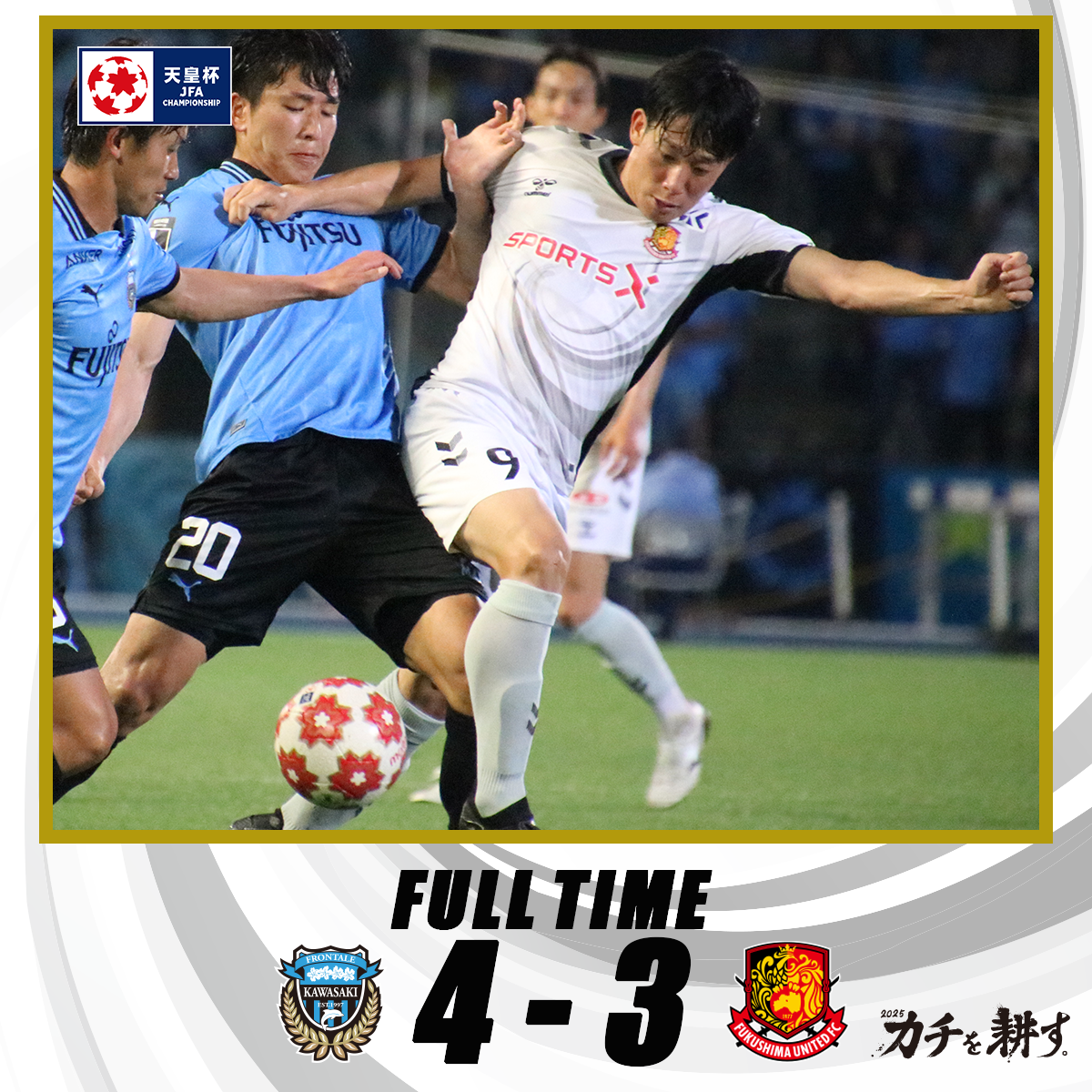 | 《天皇杯2回戦》 J3の福島ユナイテッドFC J1・川崎フロンターレに善戦及ばず 3対4で惜敗 …サッカー天皇杯で6月11日、J3の福島ユナイテッドFCは2回戦でJ1の川崎フロンターレと対戦。福島ユナイテッドFCの寺田監督にとって、選手・コーチあ… (出典:福島テレビ) |